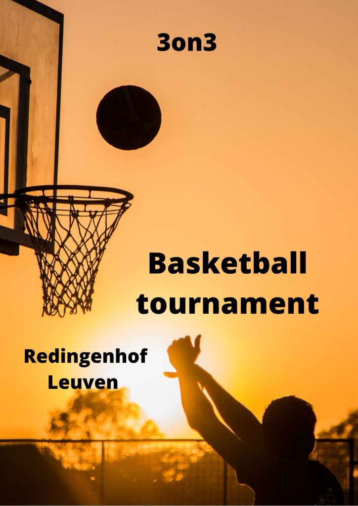 Deze flyer is gemaakt om een basketbal tornooi aan te kondigen dat plaats zal vinden in het redingenhof te leuven.
